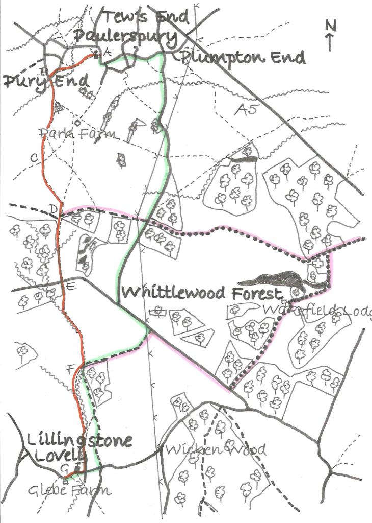 To return to Pury End and Paulerspury reverse the above walk directions.